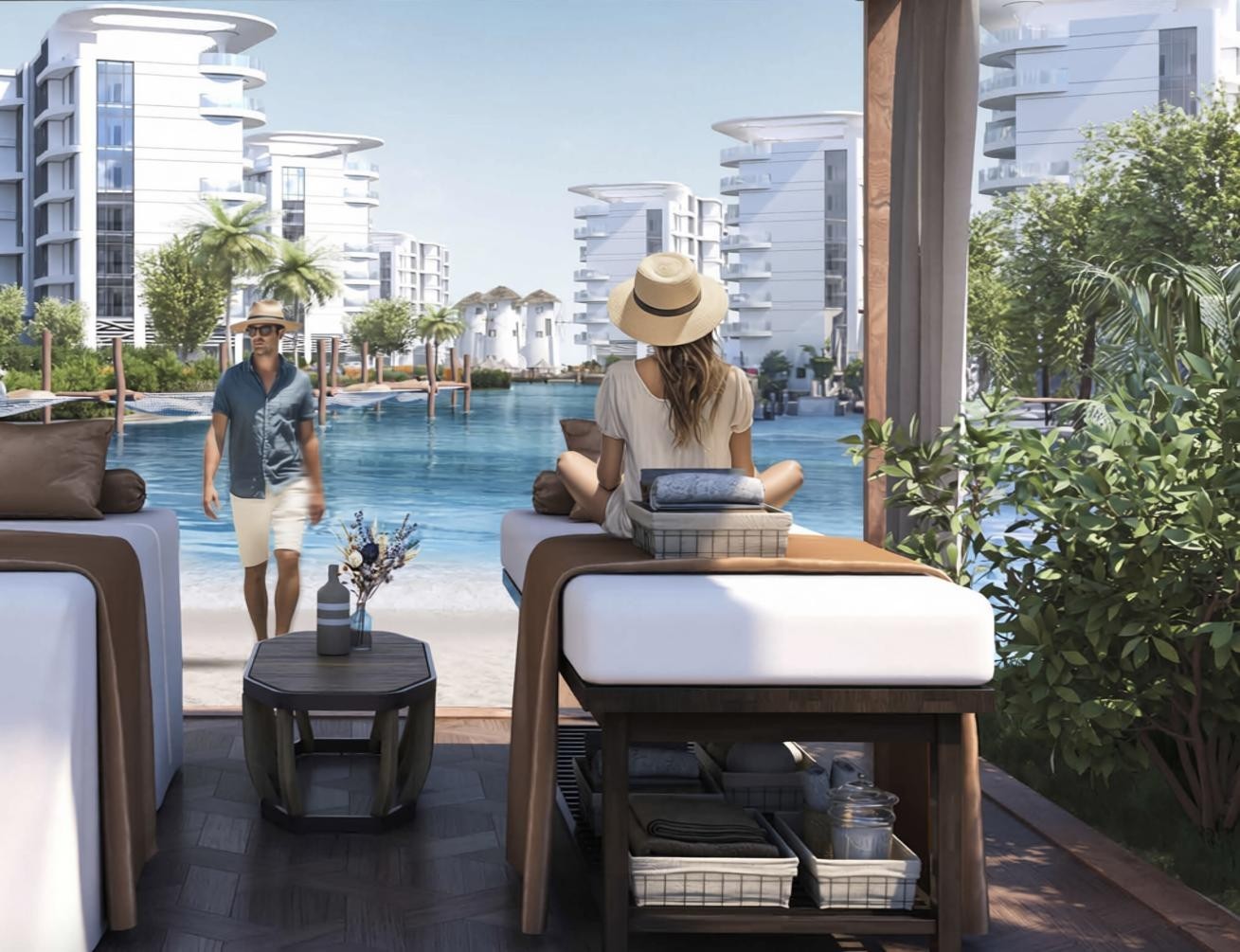 The real differentiator is the lifestyle offering. Residents benefit from swimmable crystal lagoons, white sandy beaches, beach clubs, floating pods, sunset bars, and curated social spaces. This is complemented by wellness and cultural features, including outdoor yoga areas, spa facilities, an aqua gym, an outdoor cinema, and themed gardens.