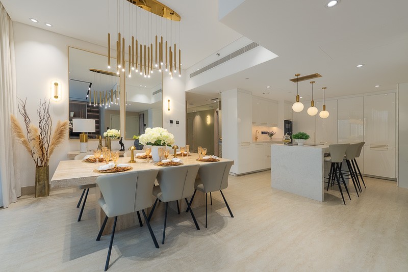 From the moment you enter, the residence reveals a sense of calm sophistication, with a side marina view gently framing the open plan living and dining areas. The layout is generous and fluid, designed to feel residential rather than vertical, with proportions and finishes more commonly found in a private villa than an apartment.