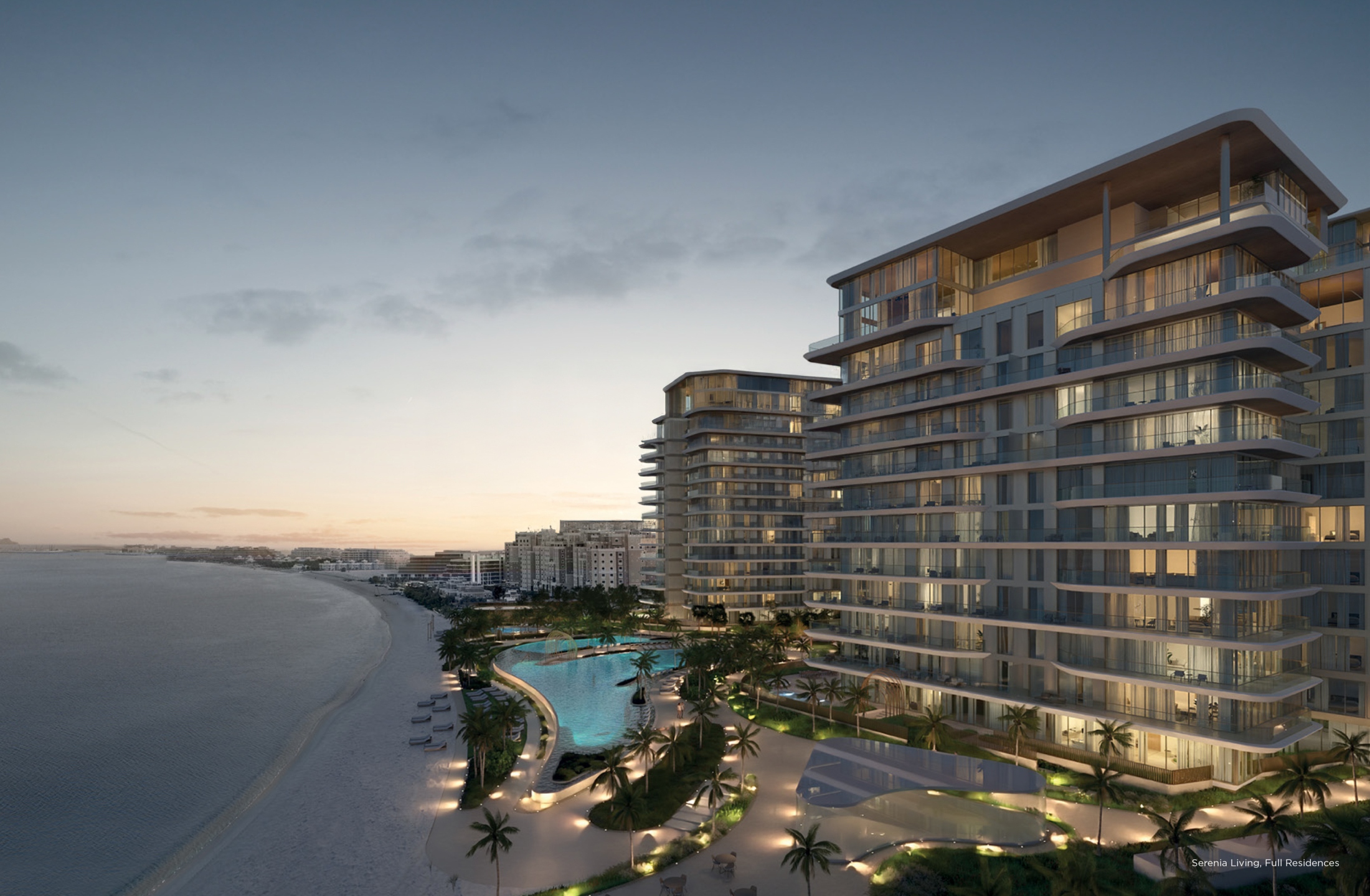 Serenia Living is a landmark development set on the tranquil West Crescent of Palm Jumeirah. Designed to deliver resort-style living in a private residential setting, the community offers: