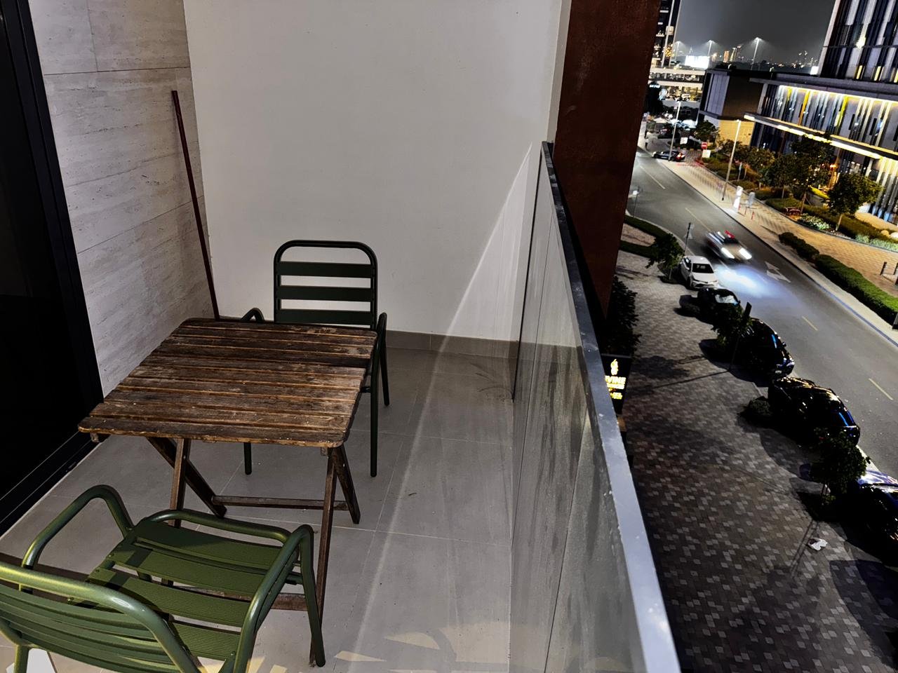 * Balcony with neighborhood view