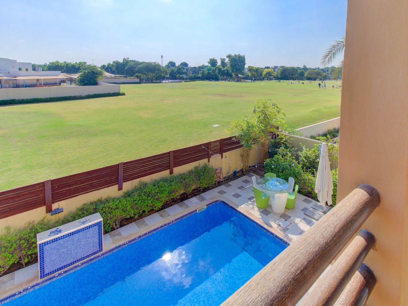 - Mature garden with pool.