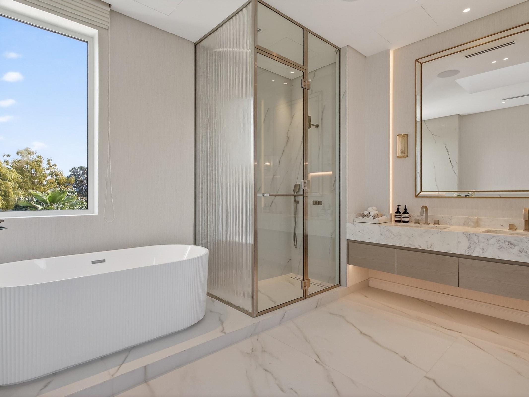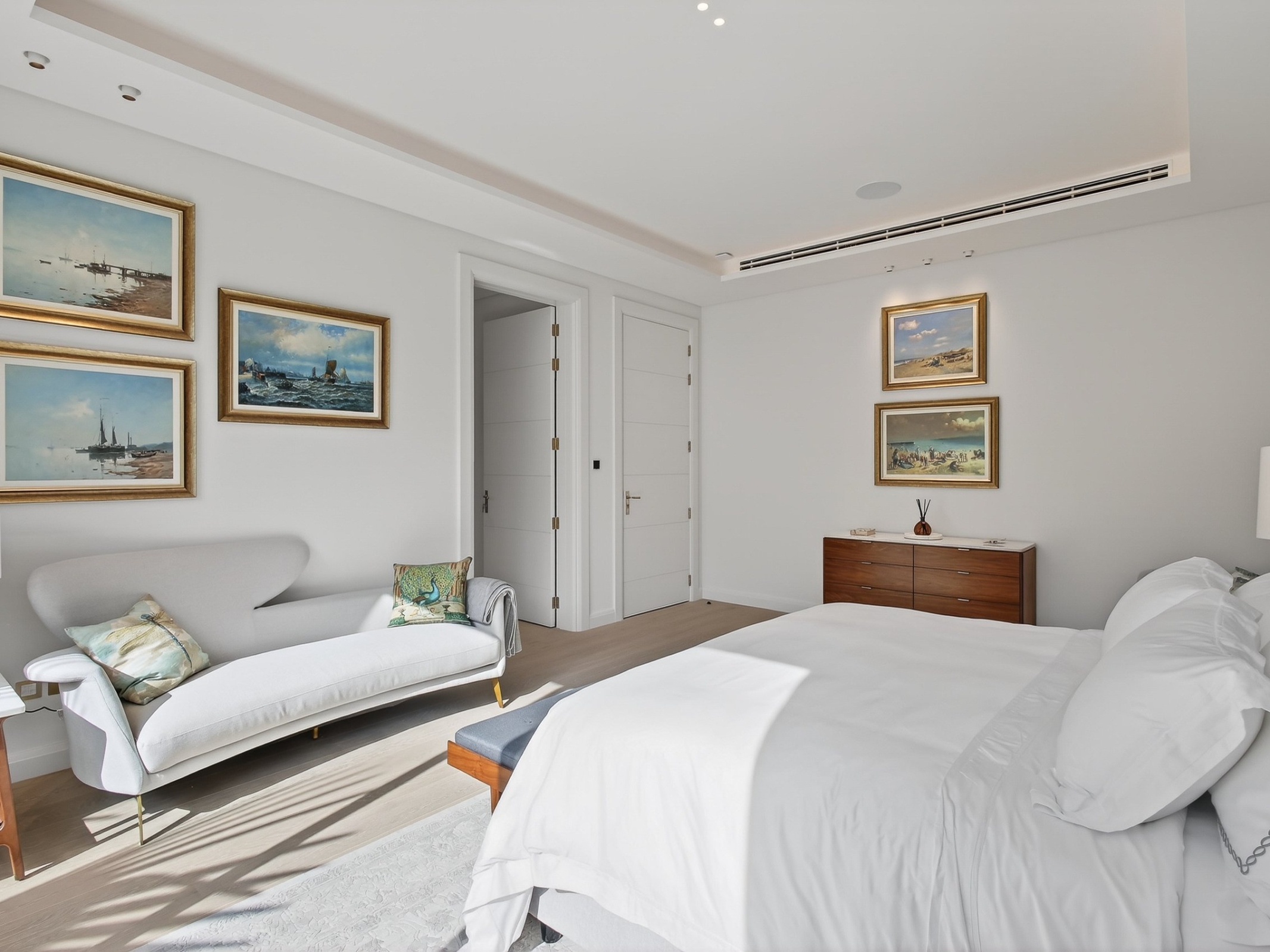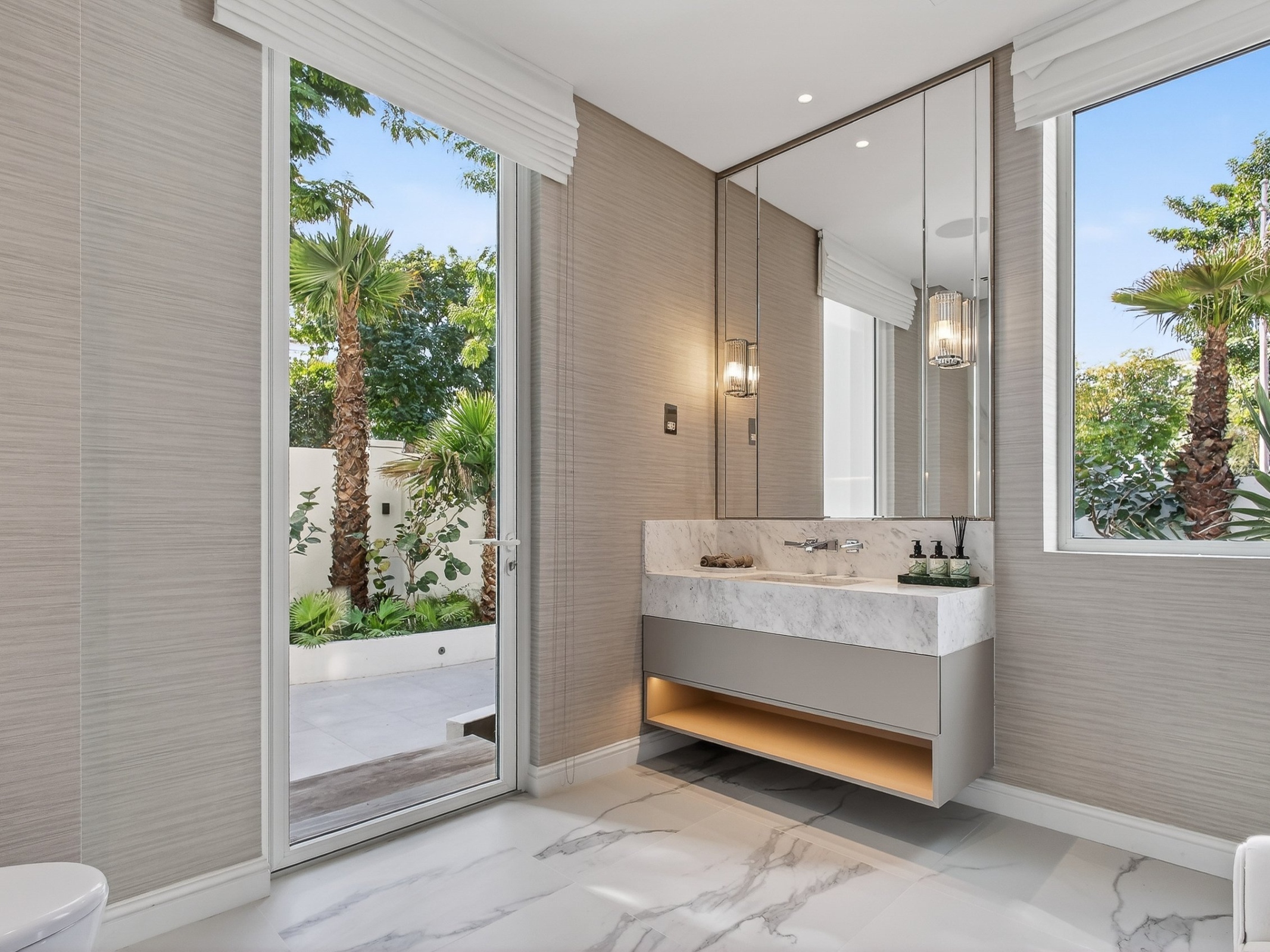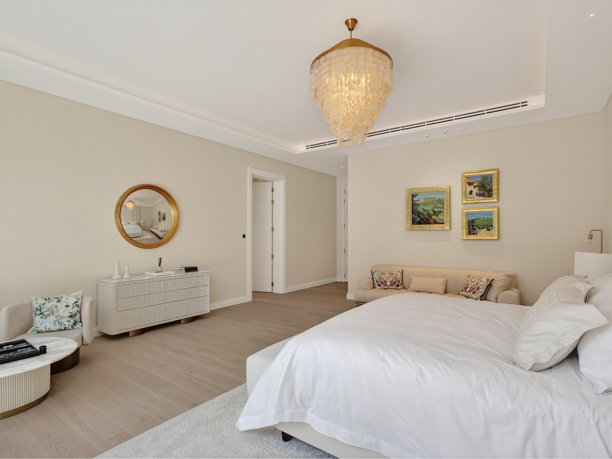 Arranged across 16,500 sq ft and three beautifully proportioned levels, the villa has been designed with balance and privacy in mind. Five generous principal en-suite bedrooms are thoughtfully distributed, allowing the house to feel expansive yet composed, with natural light and outlooks shaping each space.