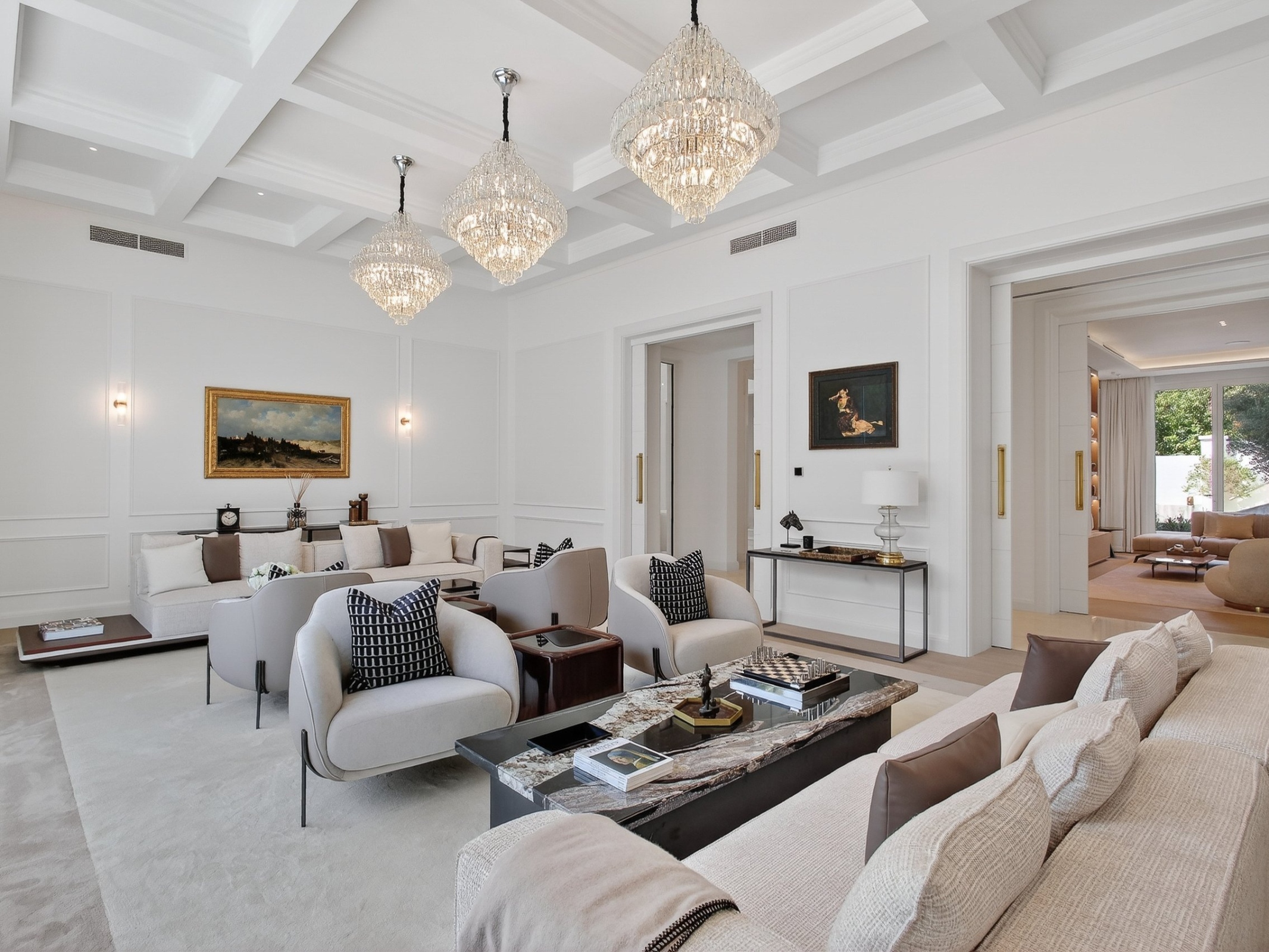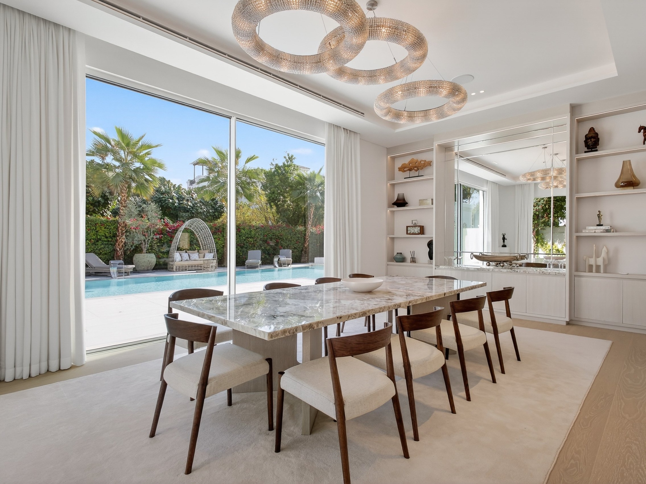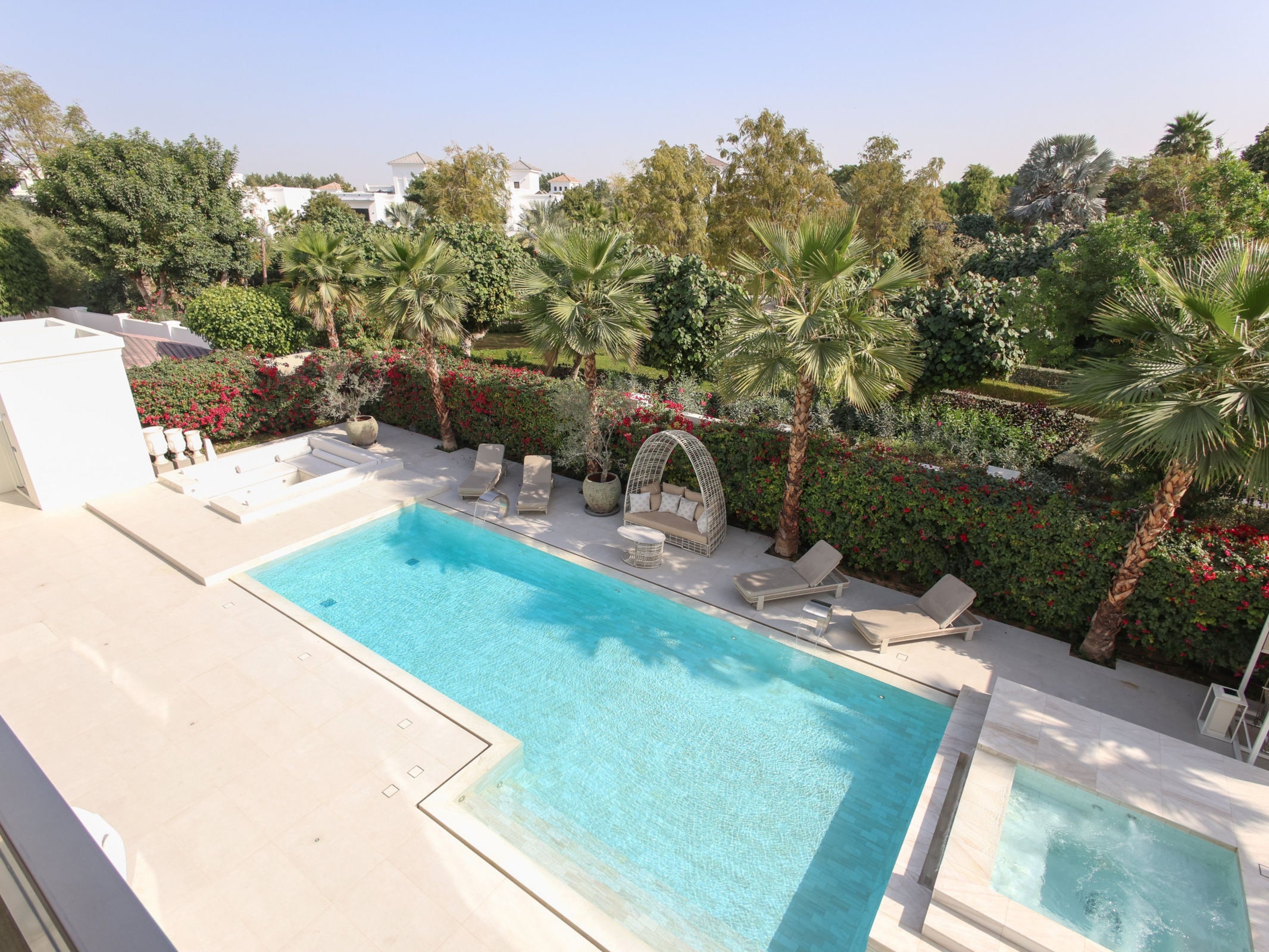 Bespoke interiors and custom dressing rooms provide elegant storage for life’s finer details, allowing the home to remain effortlessly composed. Outdoors, the calm of the pool and jacuzzi forms a natural gathering point for family and friends, complemented by generous entertaining spaces ideal for relaxed barbecues and intimate occasions alike.