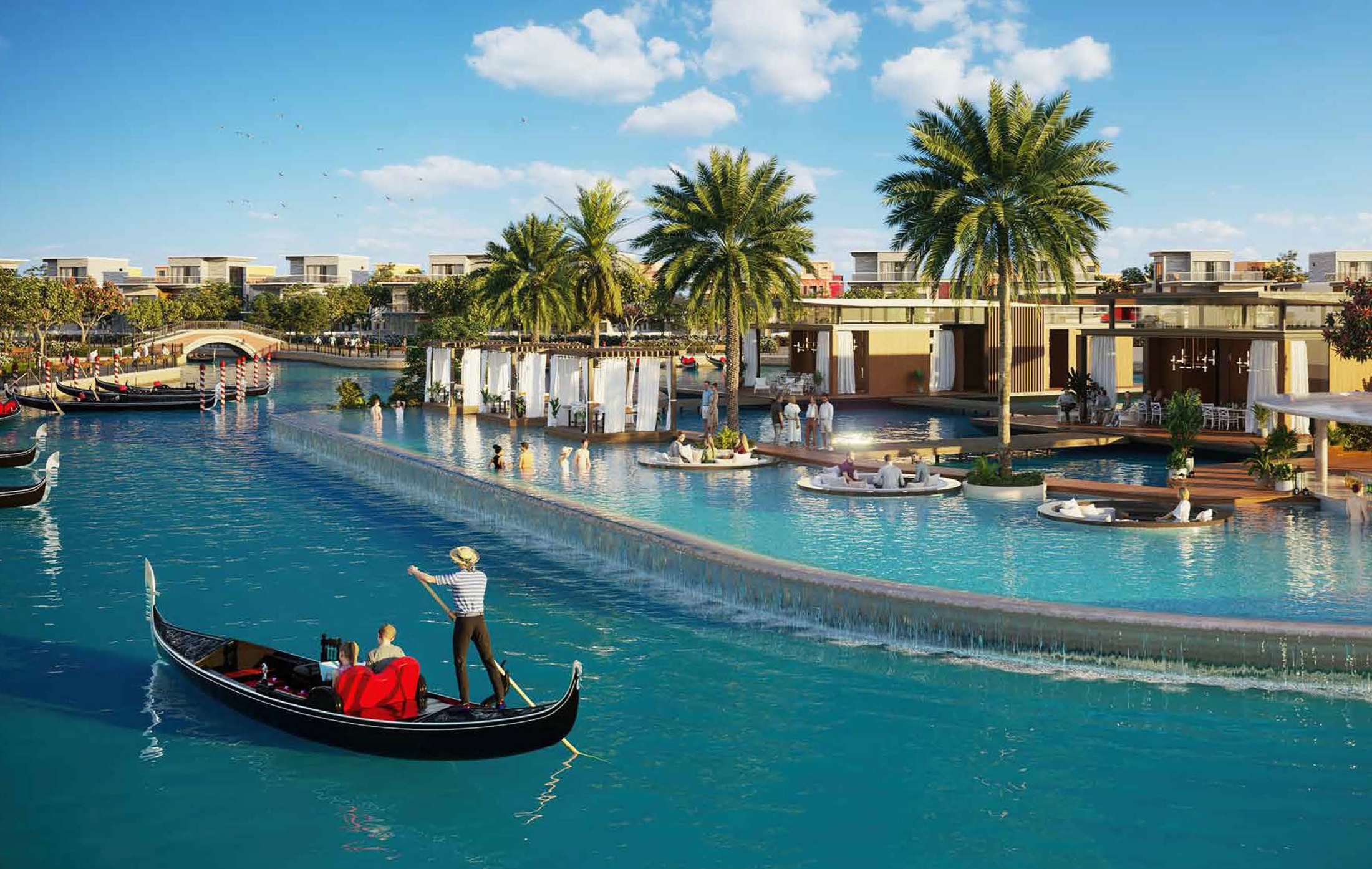 Positioned directly on the lagoon and framed by landscaped parks, the residence offers uninterrupted water views and enhanced seclusion. Designed for elevated living, it features dual show kitchens with premium finishes, expansive formal and family lounges, a private elevator, rooftop terraces, gym, steam room, sauna, cinema, and gondola-inspired waterfront surroundings.