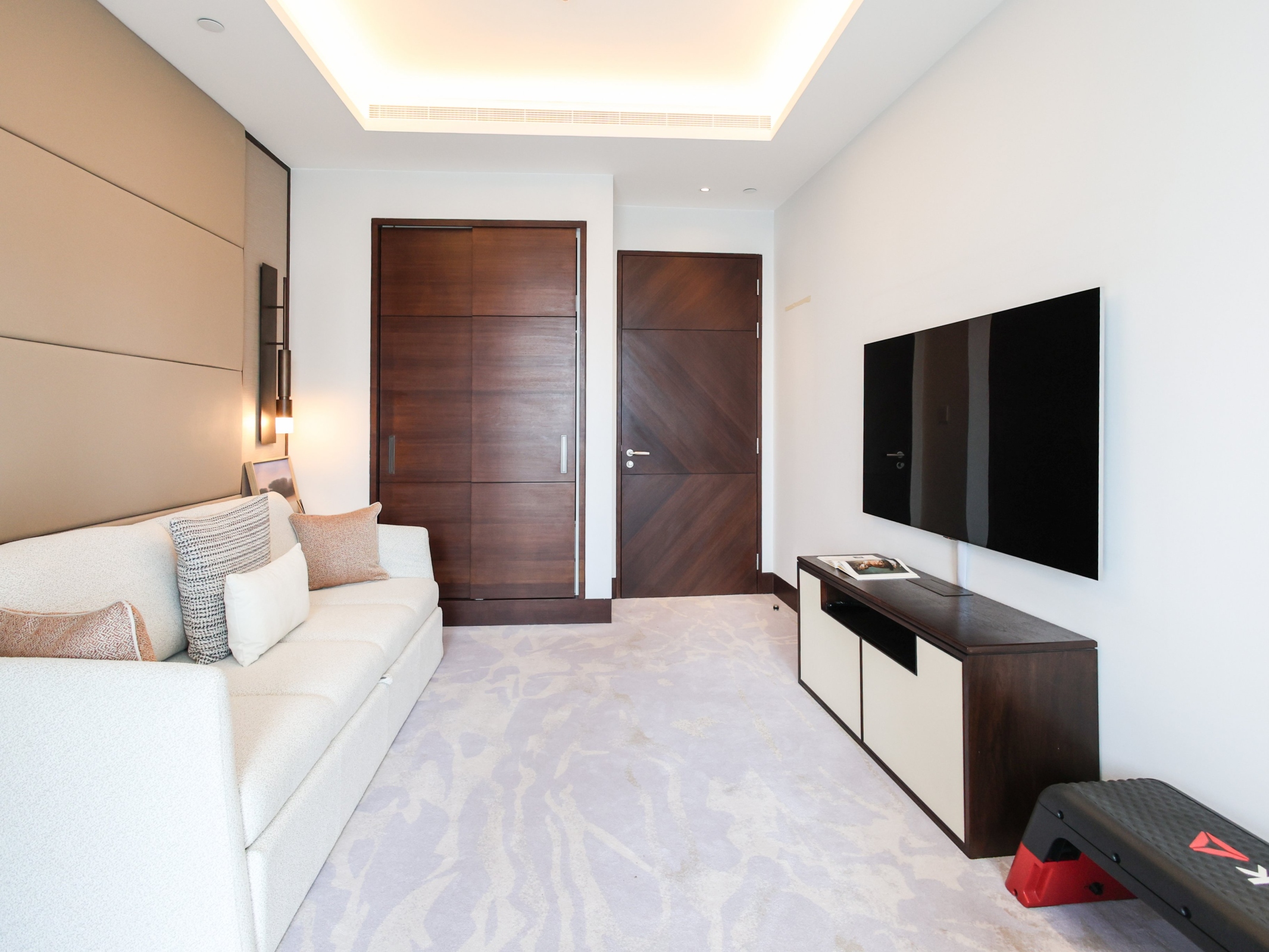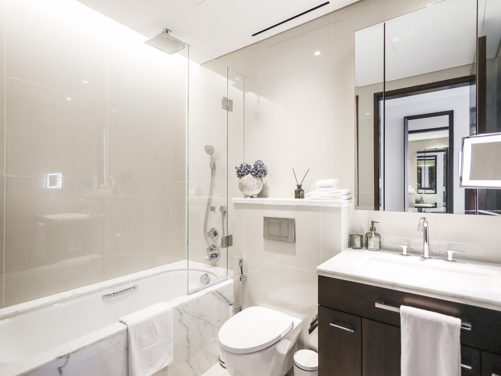 Designed with meticulous attention to detail to ensure absolute privacy, the property benefits from two separate entrances: one leading directly to the bedrooms for complete discretion, and the other opening onto the living and reception areas.