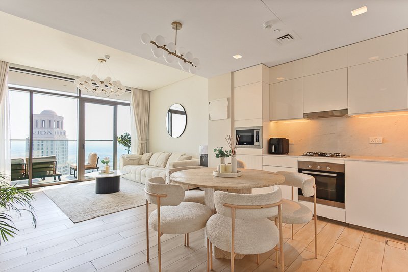 Barnes International presents this fully furnished, elegant 2-bedroom apartment in the prestigious Palace Residences, Dubai Creek Harbour. Spanning 1,104 sq.ft on a high floor, the residence offers breathtaking views of Creek Beach and the future Creek Tower, combining refined living with a truly exceptional waterfront setting.