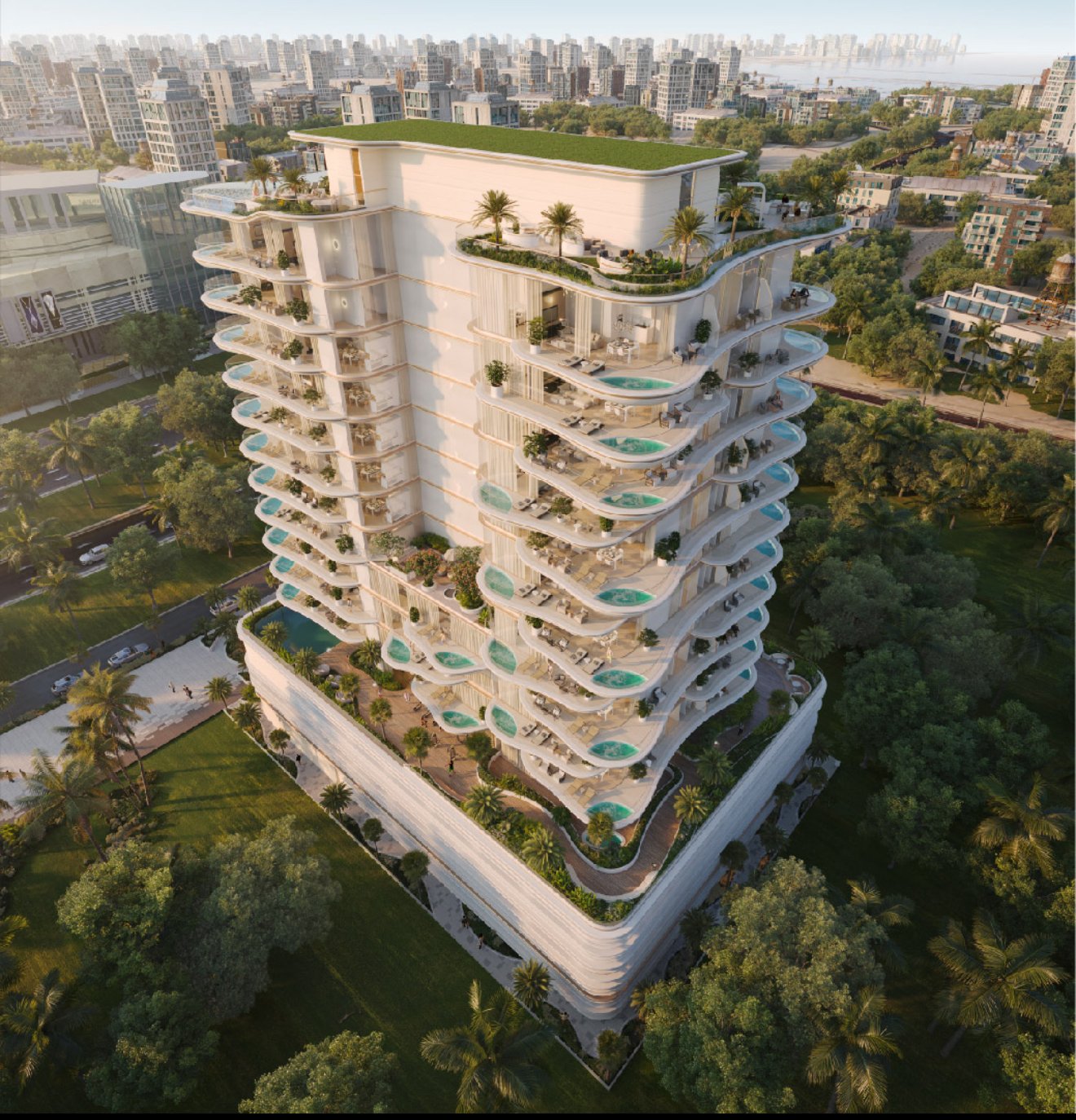 A fully furnished smart home apartment with premium amenities—including a rooftop infinity pool, zen garden, and yoga retreat—set in a prime coastal Dubai location with direct access to pristine beaches and sea views.