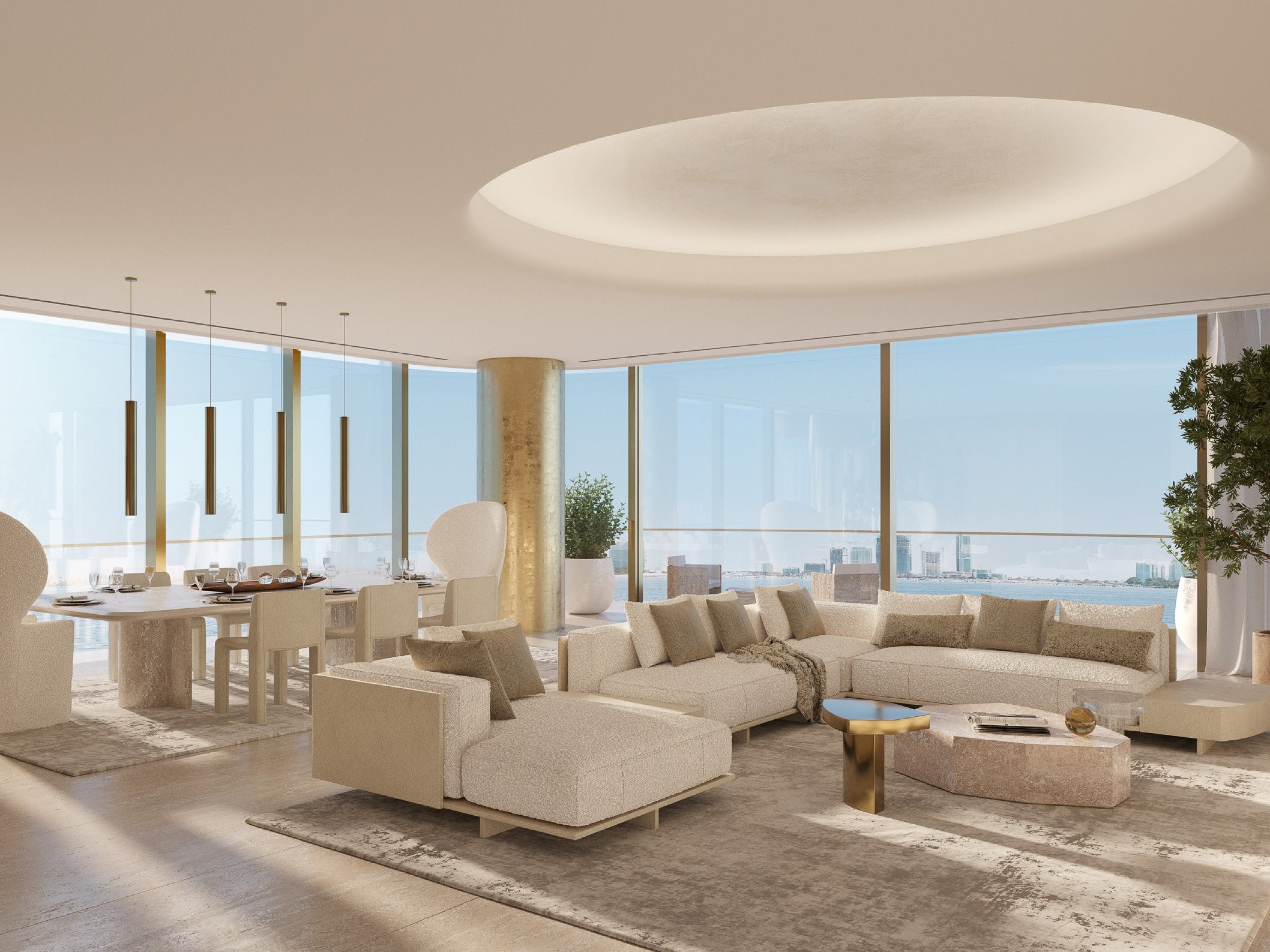 Expansive living and dining areas are framed by full-height glazing that captures uninterrupted waterfront perspectives, while carefully considered circulation creates natural separation between entertaining zones and private bedroom suites.