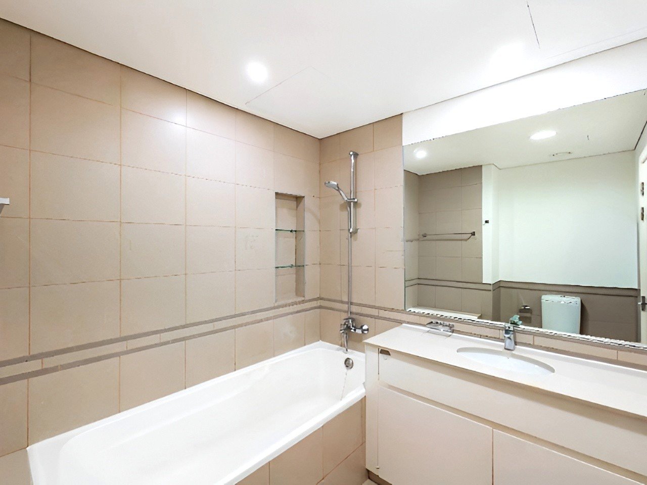 • Stylish Bathroom with shower over bath